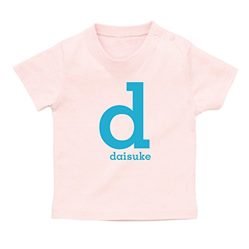 イニシャル Tシャツ / ベビーサイズ [BT343] 80cm ライトピンク×ブルーロゴ 出産祝い 誕生日 プレゼント おしゃれな 名前入り ベビー服