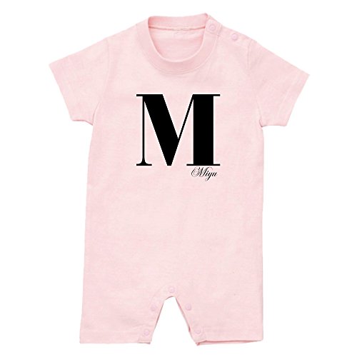 イニシャル 半袖 ロンパース [HR347] 80cm ライトピンク 出産祝い 誕生日 プレゼント おしゃれな 名入れ ベビー服