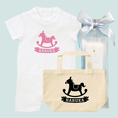 出産祝い 名前入り ギフトセット / ショート ロンパース & トートバッグ [GP390] 70cm [Rom]ホワイト×ピンクロゴ 出産祝い 誕生日 プレゼント おしゃれな 名入れ ギフト