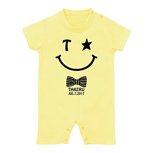 名入れ スマイル柄 半袖 ロンパース [HR335] 80cm ライトイエロー 出産祝い 誕生日 プレゼント おしゃれな 名前入り ベビー服