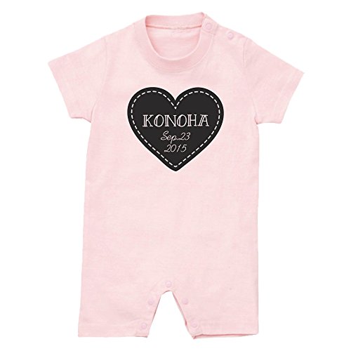 名前入り 半袖 ロンパース [HR402] 80cm ライトピンク×ダークグレー柄 出産祝い 誕生日 プレゼント おしゃれな 名入れ ベビー服