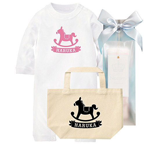 出産祝い 名前入り ギフトセット / 長袖 ロンパース & トートバッグ [GP391] 80cm [Rom]ホワイト×ピンク柄 出産祝い 誕生日 プレゼント おしゃれな 名入れ ギフト
