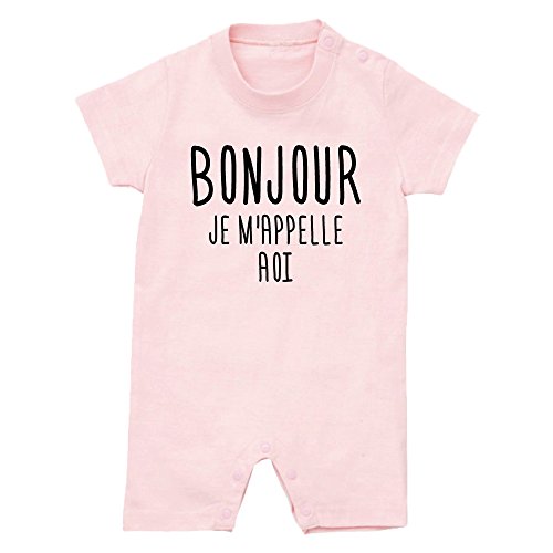 名前入り ボンジュール/BONJOUR 半袖 ロンパース [HR414] 80cm ライトピンク 出産祝い 誕生日 プレゼント おしゃれな 名入れ ベビー服