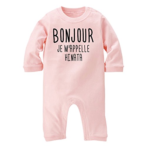 名前入り ボンジュール/BONJOUR 長袖 ロンパース [LR415] 80cm ライトピンク 出産祝い 誕生日 プレゼント おしゃれな 名入れ ベビー服