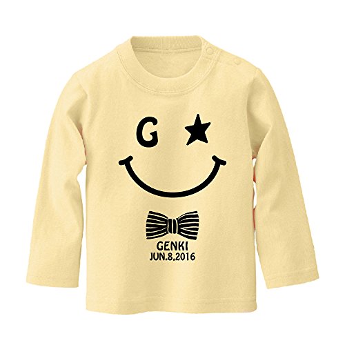 名入れ 長袖 スマイル柄 Tシャツ / ベビーサイズ [BT442] 90cm ライトイエロー 出産祝い 誕生日 プレゼント おしゃれな 名前入り ベビー服