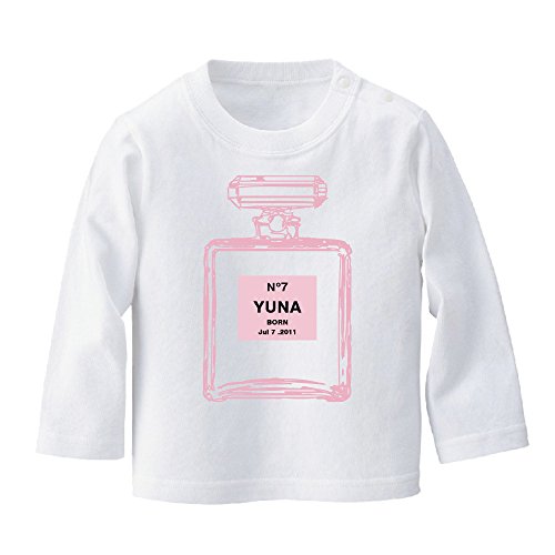名入れ 長袖 Tシャツ [BT430] 90cm ホワイト×ピンク柄 出産祝い 誕生日 プレゼント おしゃれな 名前入り ベビー服