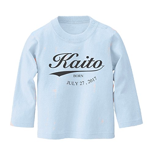 名入れ 長袖 Tシャツ [BT426] 80cm ライトブルー×ダークグレーロゴ 出産祝い 誕生日 プレゼント おしゃれな 名前入り ベビー服