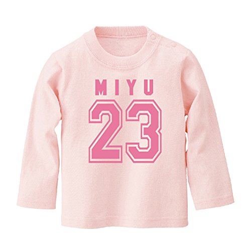 名入れ 長袖 Tシャツ / ベビーサイズ [BT438] 80cm ライトピンク×ピンクロゴ 出産祝い 誕生日 プレゼント おしゃれな 名前入り ベビー服