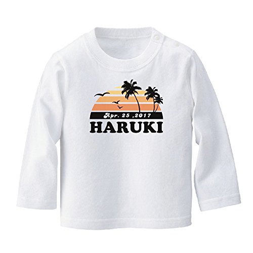 名前入り 長袖 Tシャツ [BT441] 90cm ホワイト 出産祝い 誕生日 プレゼント おしゃれな 名入れ ベビー服