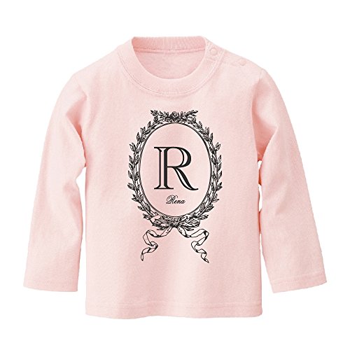 イニシャル 長袖 Tシャツ / ベビーサイズ [BT446] 90cm ライトピンク×ダークグレー柄 出産祝い 誕生日 プレゼント おしゃれな 名入れ ベビー服