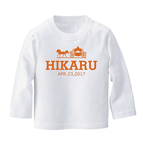 名入れ 長袖 Tシャツ [BT439] 80cm ホワイト×オレンジロゴ 出産祝い 誕生日 プレゼント おしゃれな 名前入り ベビー服