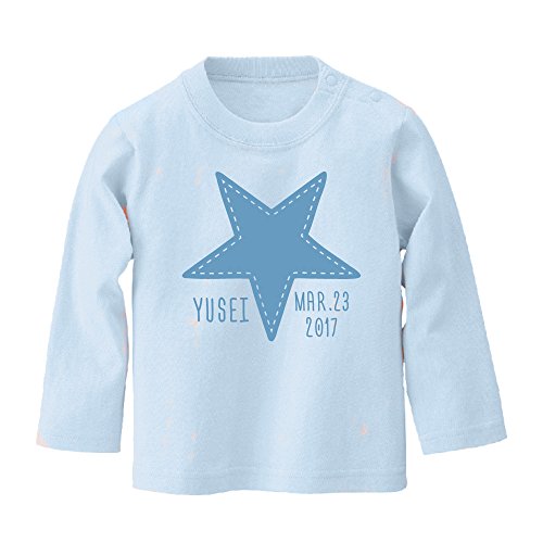 名前入り 長袖 Tシャツ / ベビーサイズ [BT448] 80cm ライトブルー×ブルーロゴ 出産祝い 誕生日 プレゼント おしゃれな 名入れ ベビー服