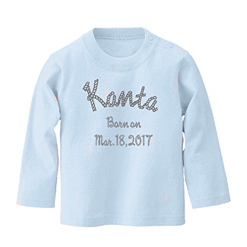 名入れ 長袖 Tシャツ / ベビーサイズ [BT436] 90cm ライトブルー×グレーロゴ 出産祝い 誕生日 プレゼント おしゃれな 名前入り ベビー服