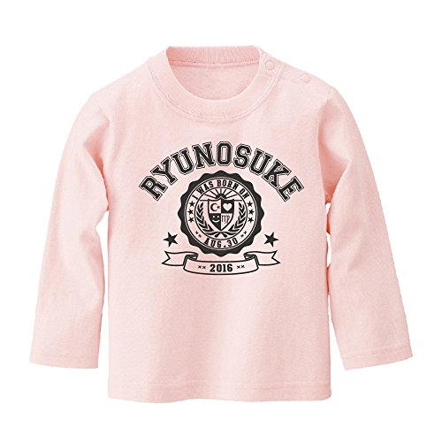 名入れ 長袖 Tシャツ / ベビーサイズ [BT431] 90cm ライトピンク×ダークグレーロゴ 出産祝い 誕生日 プレゼント おしゃれな 名前入り ベビー服