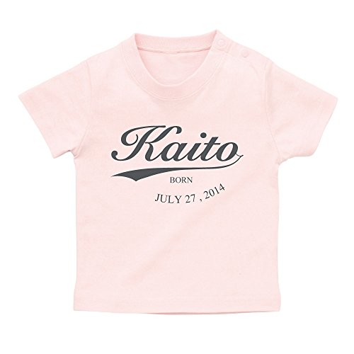 名前入り Tシャツ / ベビーサイズ [BT15] 90cm ライトピンク×ダークグレーロゴ 出産祝い 誕生日 プレゼント おしゃれな 名入れ ベビー服