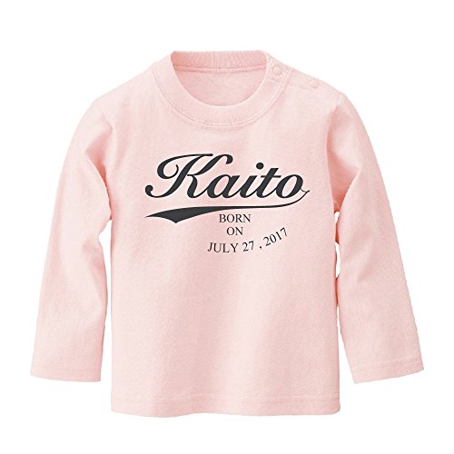 名前入り 長袖 Tシャツ / ベビーサイズ [BT425] 90cm ライトピンク×ダークグレーロゴ 出産祝い 誕生日 プレゼント おしゃれな 名入れ ベビー服