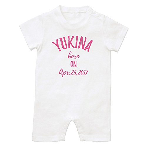 名前入り 半袖 ロンパース [HR453] 80cm ホワイト×ピンクロゴ 出産祝い 誕生日 プレゼント おしゃれな 名入れ ベビー服