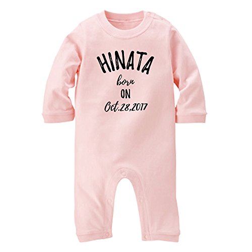 名入れ 長袖 ロンパース [LR454] 80cm ライトピンク×ブラックロゴ 出産祝い 誕生日 プレゼント おしゃれな 名前入り ベビー服