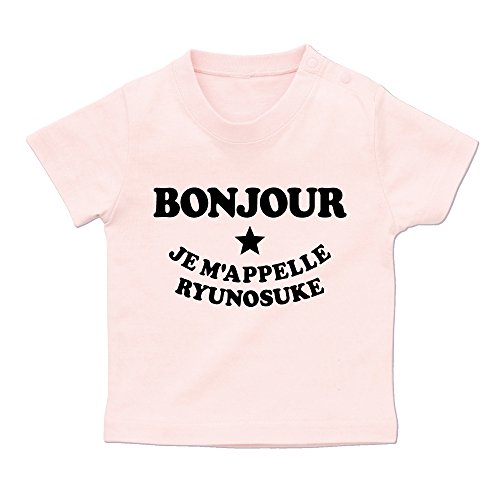名入れ ボンジュール/BONJOUR Tシャツ/ベビーサイズ [BT459] 90cm ライトピンク×ブラックロゴ 出産祝い 誕生日 プレゼント おしゃれな 名前入り ベビー服