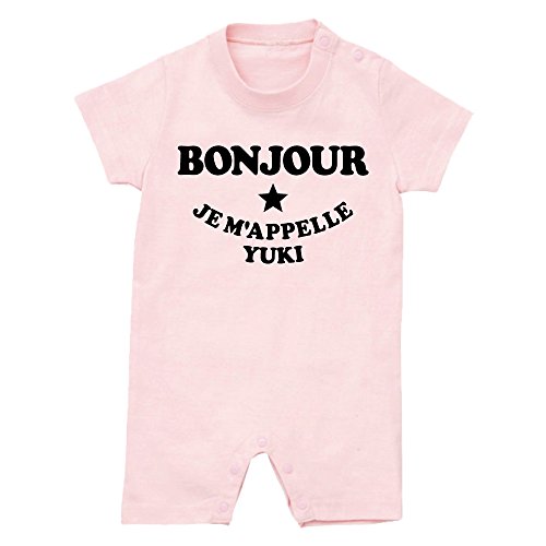 名入れ ボンジュール/BONJOUR 半袖 ロンパース [HR461] 70cm ライトピンク×ブラックロゴ 出産祝い 誕生日 プレゼント おしゃれな 名前入り ベビー服