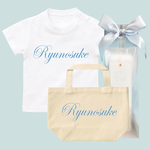 出産祝い 名前入り ギフトセット / Tシャツ & トートバッグ [GP78] 70cm [Tee]ホワイト×ブルーロゴ 出産祝い 誕生日 プレゼント おしゃれな 名入れ ギフト
