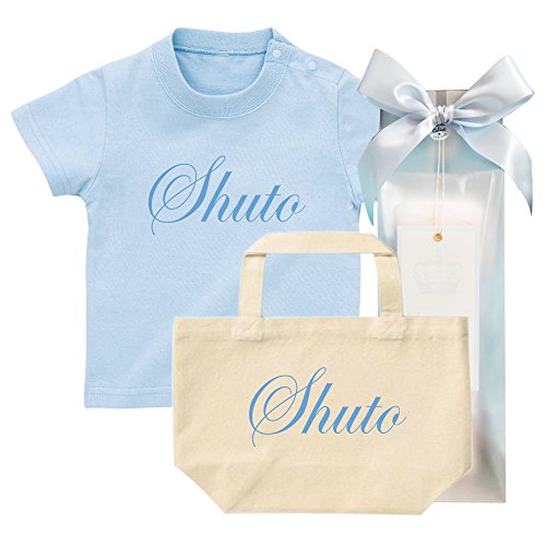 出産祝い 名前入り ギフトセット / Tシャツ & トートバッグ [GP78] 90cm [Tee]ライトブルー×ブルーロゴ 出産祝い 誕生日 プレゼント おしゃれな 名入れ ギフト