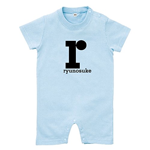 イニシャル ショート ロンパース [HR93] 80cm ライトブルー×ブラックロゴ 出産祝い 誕生日 プレゼント おしゃれな 名入れ ベビー服