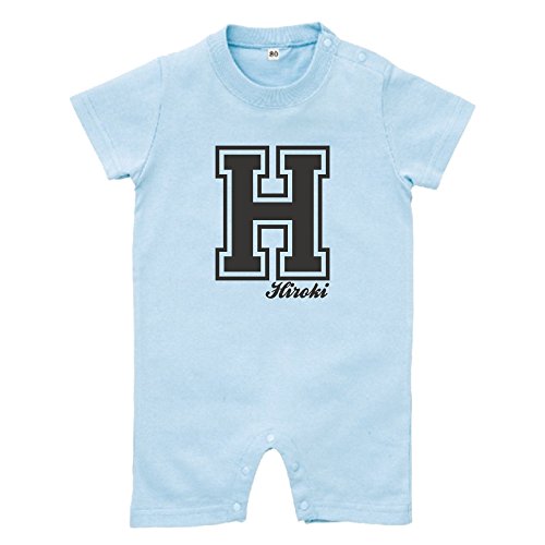 イニシャル ショート ロンパース [HR93] 80cm ライトブルー×ブラックロゴ 出産祝い 誕生日 プレゼント おしゃれな 名入れ ベビー服