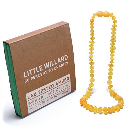 EFFECTIVE: Our Baltic Amber teething necklaces contain succinic acid, a mild pain reliever and anti-inflammatory that helps babies with teething pain. Satisfaction or full refund, guaranteed.;AUTHENTIC: Sourced by the Baltic Sea and Lab Tested in Seattle to certify authenticity and succinic acid content.;SAFE: Hand knotted teething necklace with safety screw clasp. Measures 12.5 on average, to fit toddlers comfortably.;MEANINGFUL: We give 50% of our profits to care for orphans in Kaliningrad, the source of our Baltic Amber, in partnership with Change30.;GUARANTEED: Full refund gauranteed if you are not satisfied