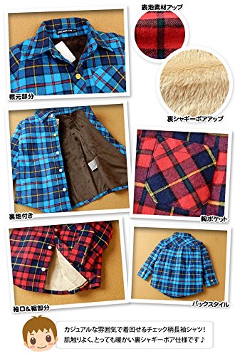 (レッド/95cm)ベビー服 男の子 シャツ 長袖 LITTLE BEAR CLUB リトルベアークラブ 裏シャギーボア 先染めチェック柄 男児 ベビー