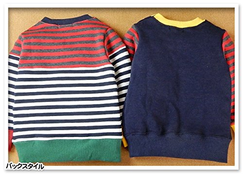(タイプB/95cm)ベビー服 男の子 トレーナー 長袖 LITTLE BEAR CLUB リトルベアークラブ 裏シャギー起毛 裁ち起毛 ボーダー柄切替 カラー切替 爆温 スナップボタン 男児 ベビー