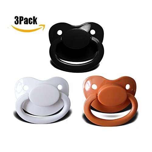 Three pacifiers (White/Red/Green) in one pack. True adult sized pacifier. Adult sized both teat and extra large shield. Teat Size: 5cm Long x 3cm Wide; Pacifier Shield Size: 6.65cm Wide x 4.75cm Tall.;High quality soft, natural silicone nipple. BPA, and latex free - see details in product descriptions below.;Adult Baby Diaper Lover Use - Reported to increse cuteness; calms and satisfies sucking urge.;Physical Therapy Use - Reported to reduce snoring; calms and satisfies sucking urge.;LittleForBig United States based customer service ensure the best customer experiences.