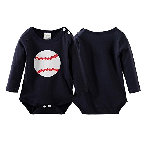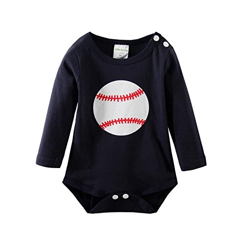LittleSpring春秋 ベビー 0ヶ月~24ヶ月 赤ちゃん 野球柄 長袖ロンパース 出産祝い・お祝いギフト・誕生日プレゼント90