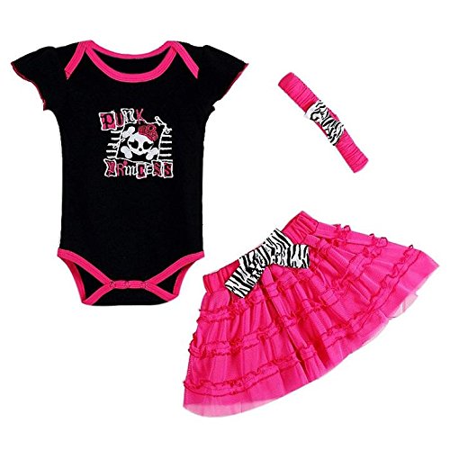 LittleSpring夏 0ヶ月~24ヶ月 赤ちゃん ベビーガールズ 女児 ドクロ柄 3色展開 ロンパース&チュールスカート&ヘアバンド 三点セットアップ お食い初め 記念撮影 出産祝いギフト プレゼント 寝相アート 百日祝い ブラック0088-9M