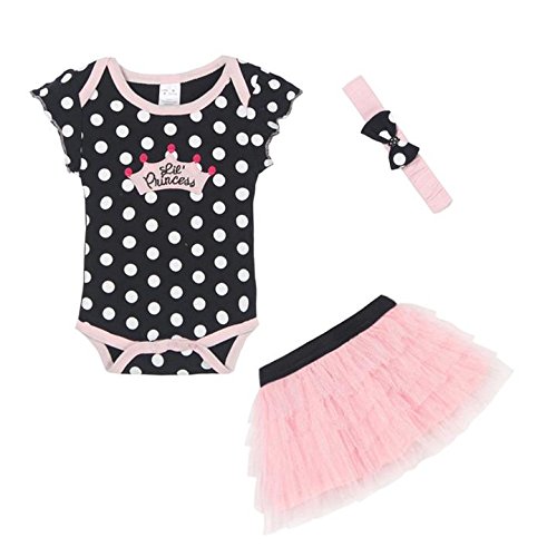 LittleSpring夏 0ヶ月~24ヶ月 赤ちゃん ベビーガールズ 女児 水玉柄 2色展開 ロンパース&チュールスカート&ヘアバンド 三点セットアップ お食い初め 記念撮影 出産祝いギフト プレゼント 寝相アート 百日祝い ブラック0083-3M
