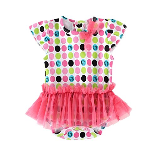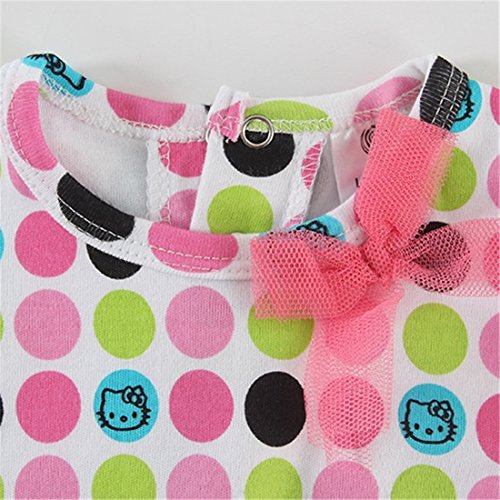 LittleSpring夏 女の子 ベビーガールズ 猫柄 カラーの水玉柄 半袖ロンパース スカート付き 出産祝い ボディ肌着 お祝いギフト 誕生日プレゼント12M