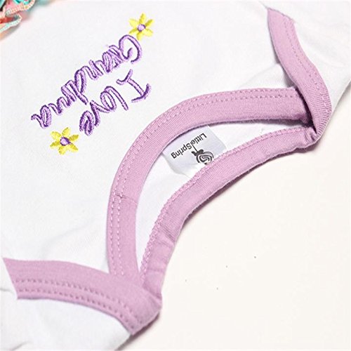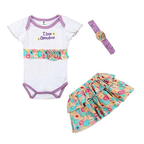 LittleSpring夏 0ヶ月~24ヶ月 赤ちゃん ベビーガールズ 女児 花柄 2色展開 花飾り ロンパース&スカート&ヘアバンド 三点セットアップ お食い初め 記念撮影 出産祝いギフト プレゼント 寝相アート 百日祝い パープル2-9M