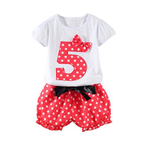 LittleSpring夏 ベビー 女の子 セットアップ お誕生日服セット 1-5歳 水玉柄 半袖 Tシャツ 水玉 ショートパンツ スカート 二点セット レッド パンツ120