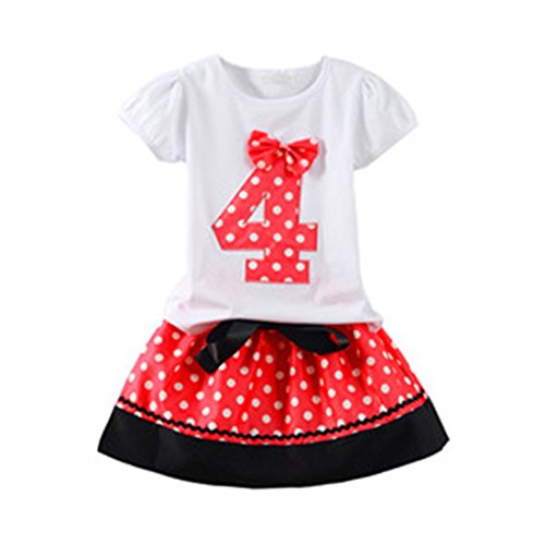 LittleSpring夏 ベビー 女の子 セットアップ お誕生日服セット 1-5歳 水玉柄 半袖 Tシャツ 水玉 ショートパンツ スカート 二点セット レッド スカート110