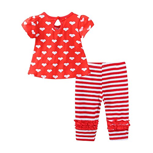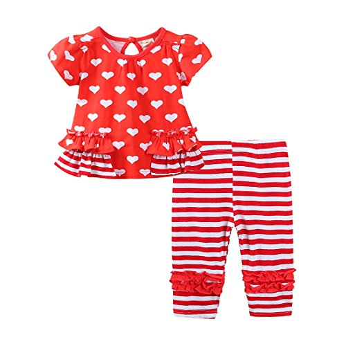 LittleSpring夏 ベビー服 ガールズ 心柄 半袖tシャツ&ボーダー ロングパンツ 部屋着 ホームウェア 90
