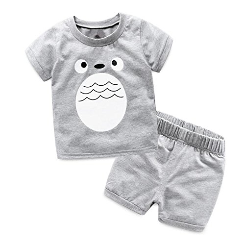 LittleSpring夏 ボーイズ 男の子 ベビーtシャツ コットン 恐竜柄 半袖Tシャツ&ショートパンツ 上下セット カジュアル グレー120