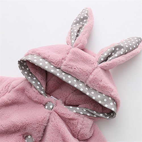 LittleSpring ベビー コート ジャケット もこもこ マント ふわふわ 耳付き パーカー キッズ 女の子 防寒 あったか 秋冬物 子供服 ポンチョ ピンク 110