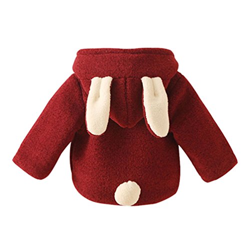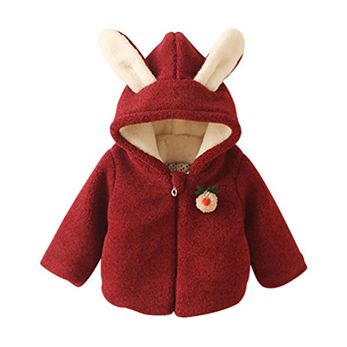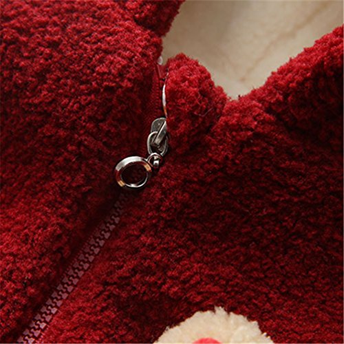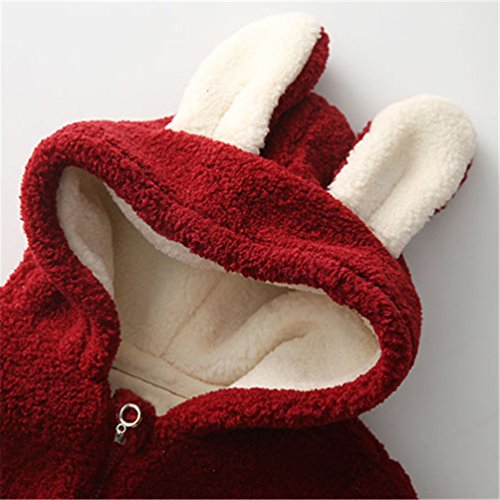 LittleSpring キッズ 女の子 中綿 コート フリース ジャケット 耳付き パーカー ポンポン 厚手 防寒 子供服 ジュニア ガールズ 着ぐるみ 赤 レッド 90
