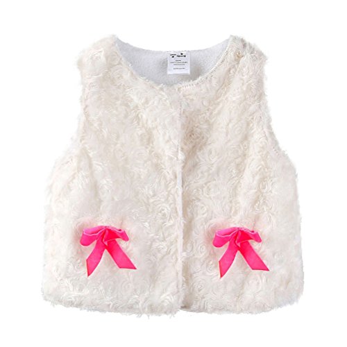 LittleSpring秋冬 ベビー かわいい リボン 毛皮ベスト 袖なし ジャケット 裏地 フリース リボン 花柄 ホワイト2-24M