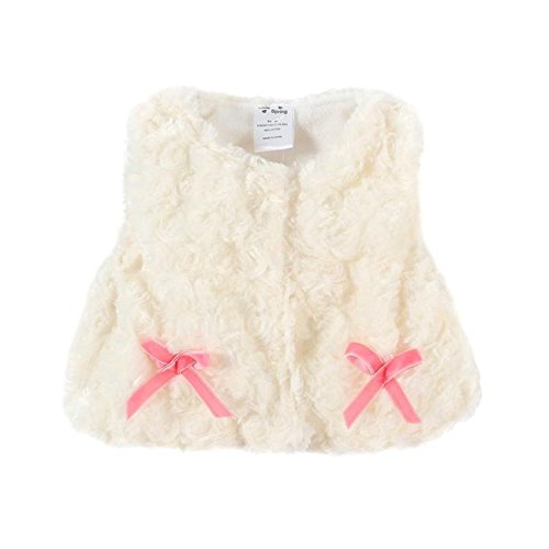 LittleSpring秋冬 かわいい 女の子 ガールズ ピンク ホワイト 蝶結び 毛皮ベスト 暖かい袖なしジャケット アウターウエア ホワイト1-12M