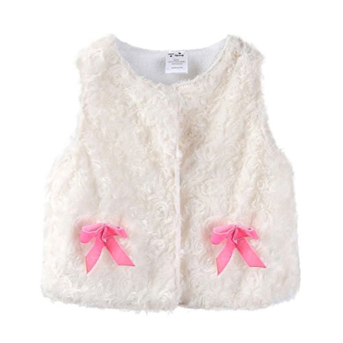 LittleSpring秋冬 ベビー かわいい リボン 毛皮ベスト 袖なし ジャケット 裏地 フリース リボン 花柄 ホワイト1-18M
