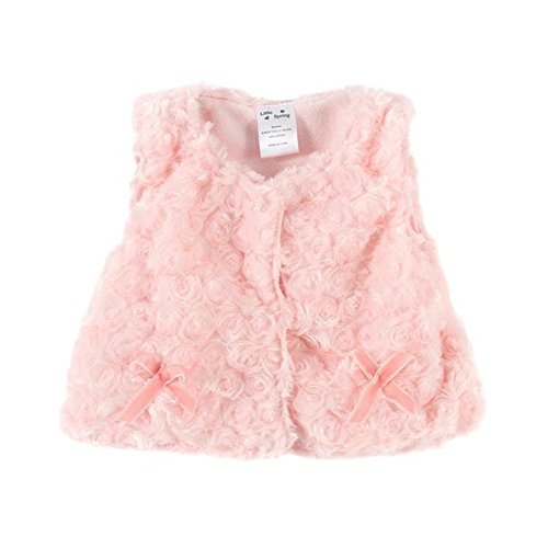 LittleSpring秋冬 かわいい 女の子 ガールズ ピンク ホワイト 蝶結び 毛皮ベスト 暖かい袖なしジャケット アウターウエア ピンク2-9M