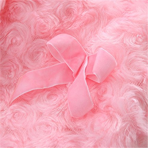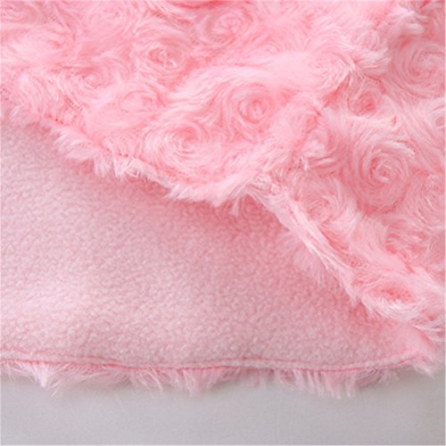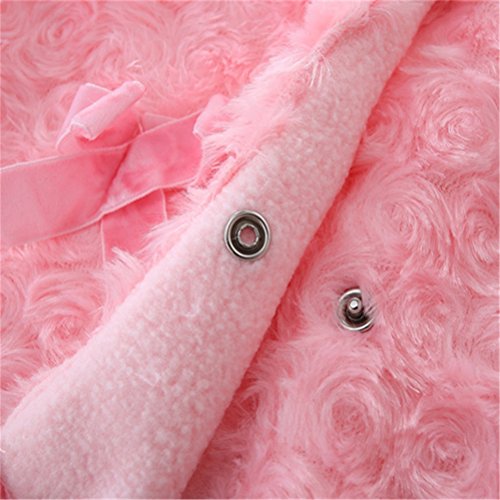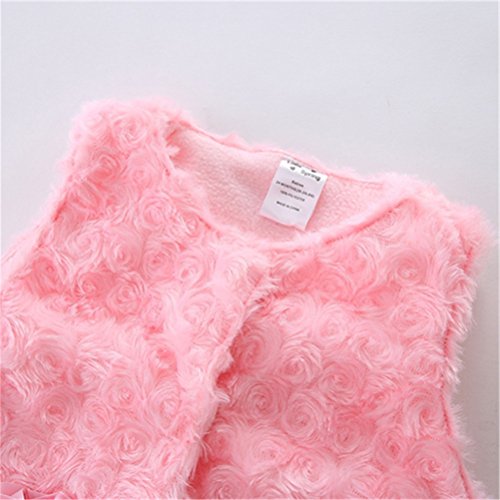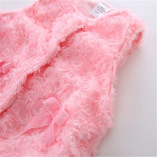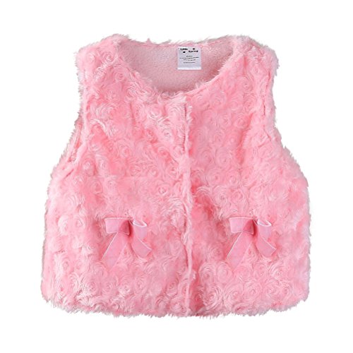 LittleSpring秋冬 ベビー かわいい リボン 毛皮ベスト 袖なし ジャケット 裏地 フリース リボン 花柄 ピンク 2-6M