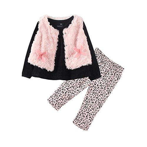 LittleSpring春秋冬 ベビーガールズ 女の子服 長袖tシャツ&ロングパンツ&蝶結び 柔らかいベスト 三点セットアップ ブラック9M
