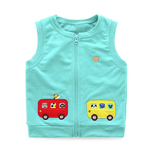 LittleSpring春秋 ベビー ベスト 男の子 女の子 ジャケット ノースリーブ ガールズ 袖なし カーディガン 車柄 ライトグリーン 90